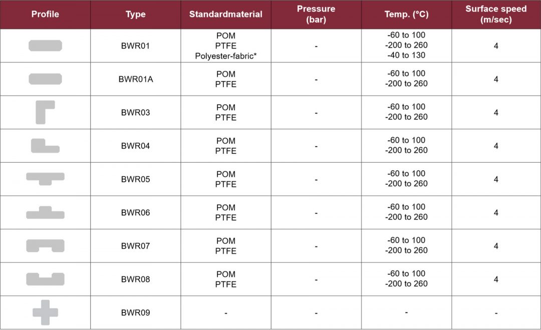 Guide rings are made of filled PTFE, POM or hard fabric.